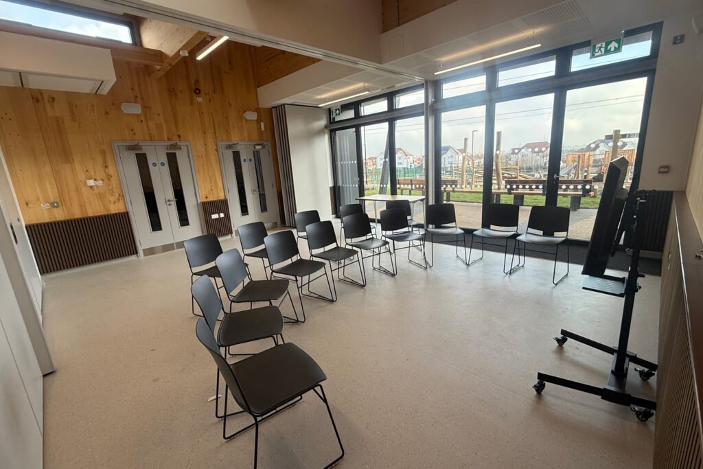 A spacious and adaptable hall designed for movement, performance, and larger group gatherings, with plenty of room to bring events to life.